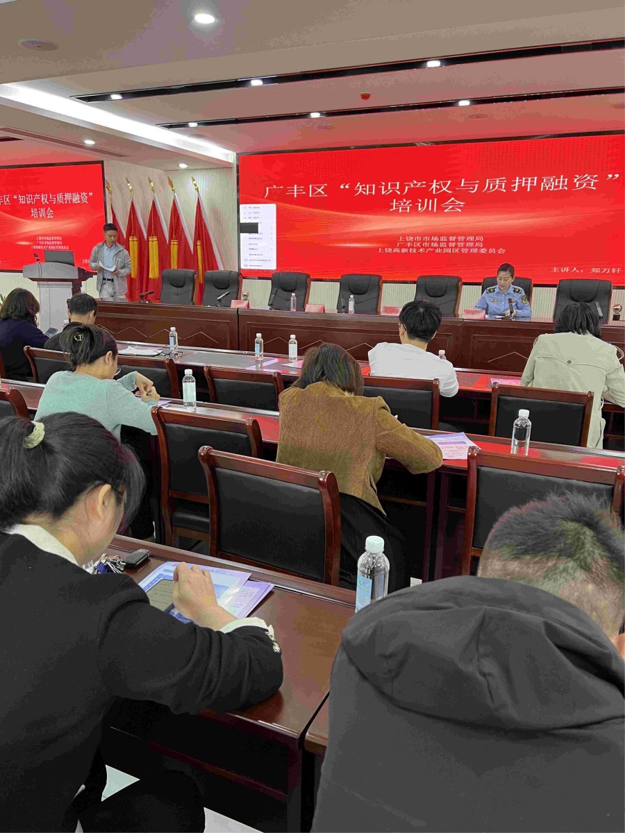 2024年7月25日,为深入贯彻国家关于加强知识产权运用和保护的战略部署,进一步推动广丰区企业利用知识产权进行质押融资,缓解企业融资难、融资贵的问题,促进企业高质量发展,广丰区市场监督管理局(知识产权局)联合南昌合达信知识产权代理事务所(普通合伙)上饶分所成功举办“知识产权与质押融资”专题培训会。会议内容包括知识产权质押融资政策解读、知识产权评估与定价、及质押融资案例分析。