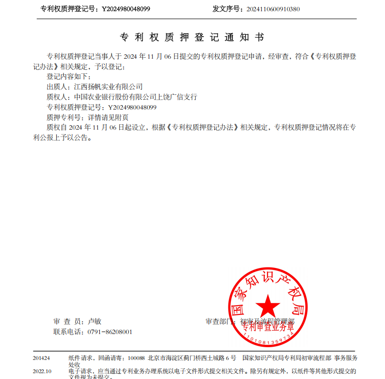 江西扬帆实业有限公司通过上饶市知识产权第三方转移转化运营平台知识产权服务专区发布的专利转化信息