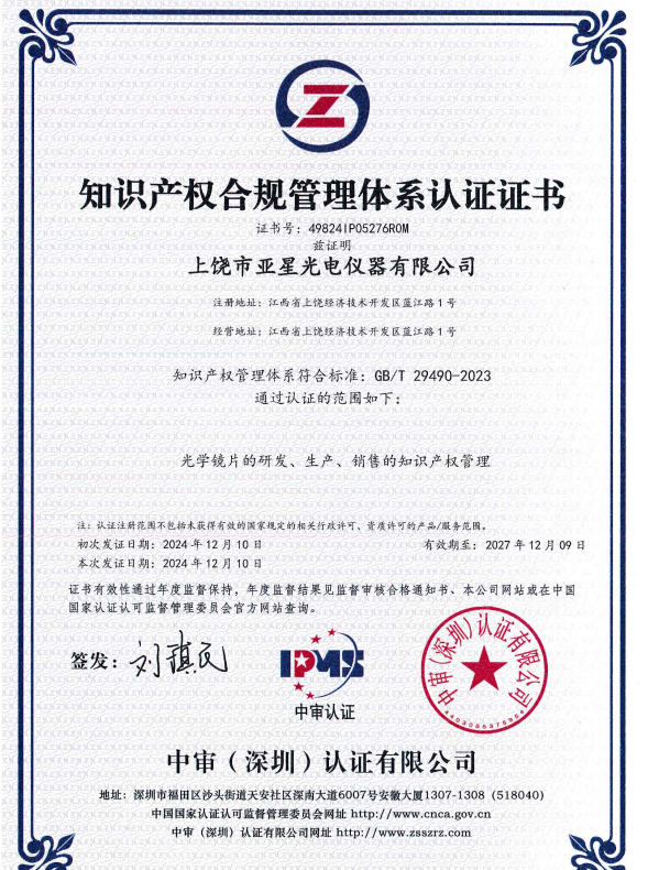 恭喜:上饶市亚星光电仪器有限公司完成知识产权贯标认证工作