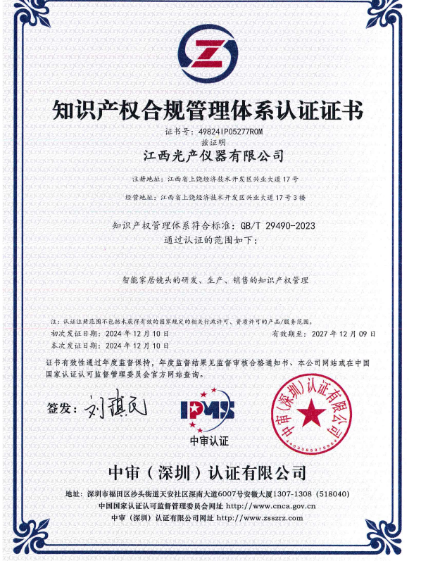 恭喜:江西光产仪器有限公司完成知识产权贯标认证工作