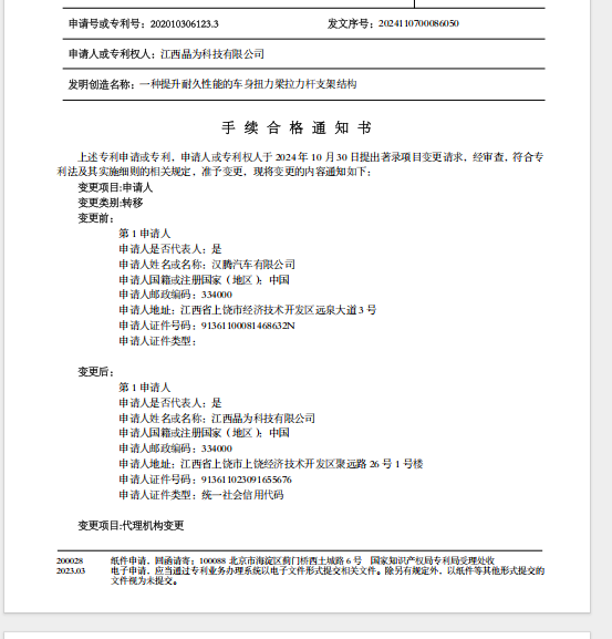 江西晶为科技有限公司通过上饶市知识产权第三方转移转化运营平台知识产权服务专区发布的专利转化信息已成功与汉腾汽车有限公司达成专利转让合作,并已成功转让。