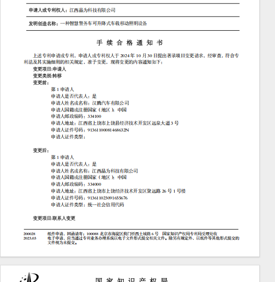 江西晶为科技有限公司通过上饶市知识产权第三方转移转化运营平台知识产权服务专区发布的专利转化信息已成功与汉腾汽车有限公司达成专利转让合作,并已成功转让。