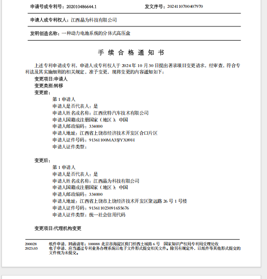 江西晶为科技有限公司通过上饶市知识产权第三方转移转化运营平台知识产权服务专区发布的专利转化信息已成功与江西优特汽车技术有限公司达成专利转让合作,并已成功转让。