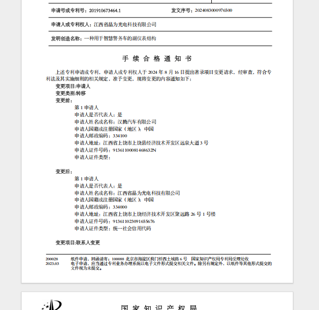 江西省晶为光电科技有限公司通过上饶市知识产权第三方转移转化运营平台知识产权服务专区发布的专利转化信息已成功与汉腾汽车有限公司达成专利转让合作,并已成功转让。