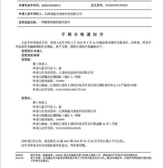 江西省晶为光电科技有限公司通过上饶市知识产权第三方转移转化运营平台知识产权服务专区发布的专利转化信息已成功与上饶市合达信科技有限公司达成专利转让合作,并已成功转让。