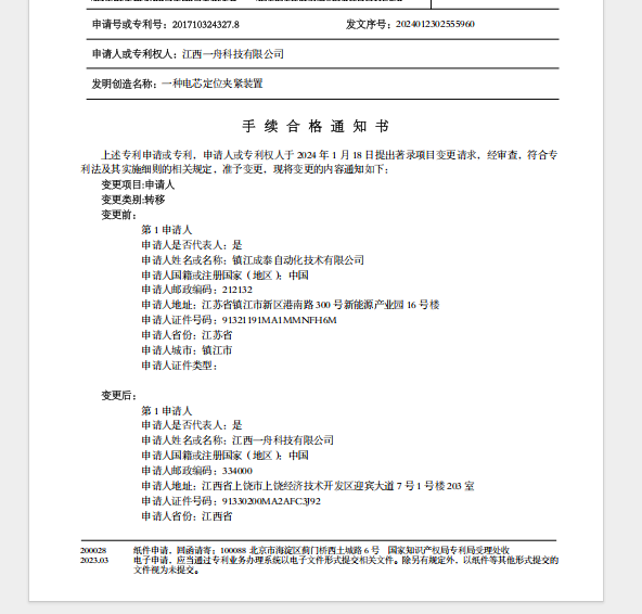 江西一舟科技有限公司通过上饶市知识产权第三方转移转化运营平台知识产权服务专区发布的专利转化信息已成功与镇江成泰自动化技术有限公司达成专利转让合作,并已成功转让。