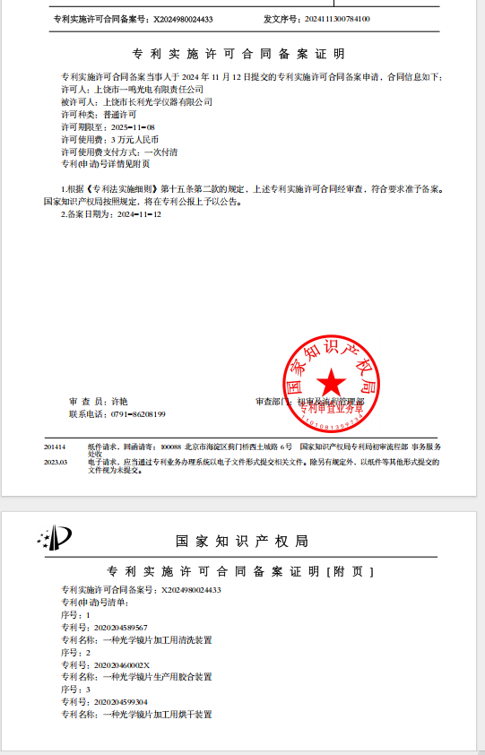 上饶市长利光学仪器有限公司通过上饶市知识产权第三方转移转化运营平台知识产权服务专区发布的专利转化信息已成功与上饶市一鸣光电有限责任公司达成专利许可合作,并已成功许可。