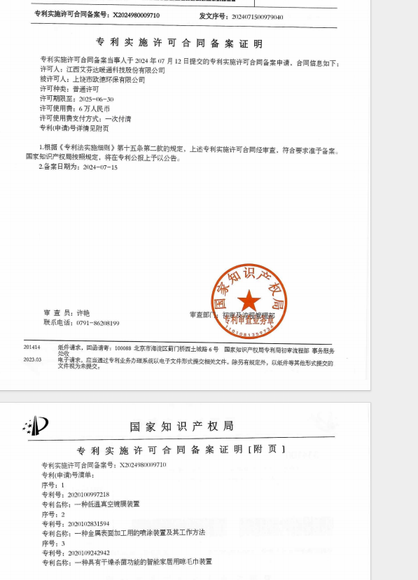 上饶市欧德环保有限公司通过上饶市知识产权第三方转移转化运营平台知识产权服务专区发布的专利转化信息已成功与 达成专利许可合作,并已成功许可。