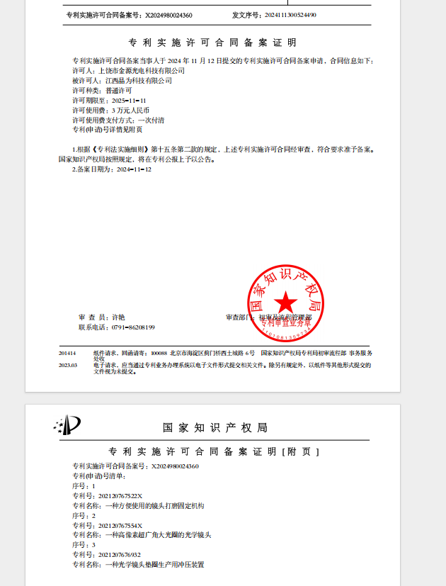 江西晶为科技有限公司通过上饶市知识产权第三方转移转化运营平台知识产权服务专区发布的专利转化信息已成功与上饶市金源光电科技有限公司达成专利许可合作,并已成功许可。